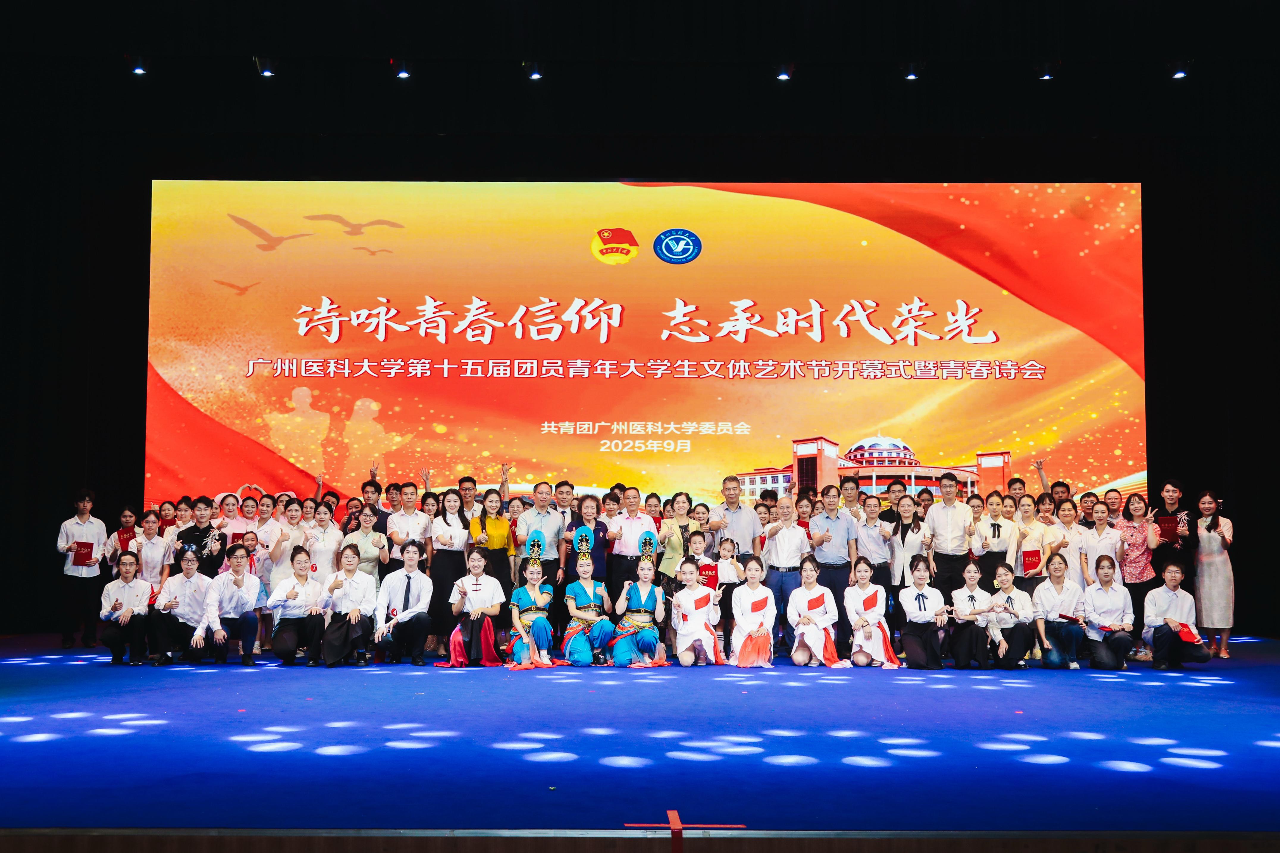 以青春之诗,咏青春之志。9月28日,广州医科大学团委举办“诗咏青春信仰 志承时代荣光”第十五届团员青年大学生文体艺术节开幕式暨青春诗会,以青春诵读的形式,勉励青年勇担时代使命,书写人生诗篇,超过1000人次团员青年参与其中。