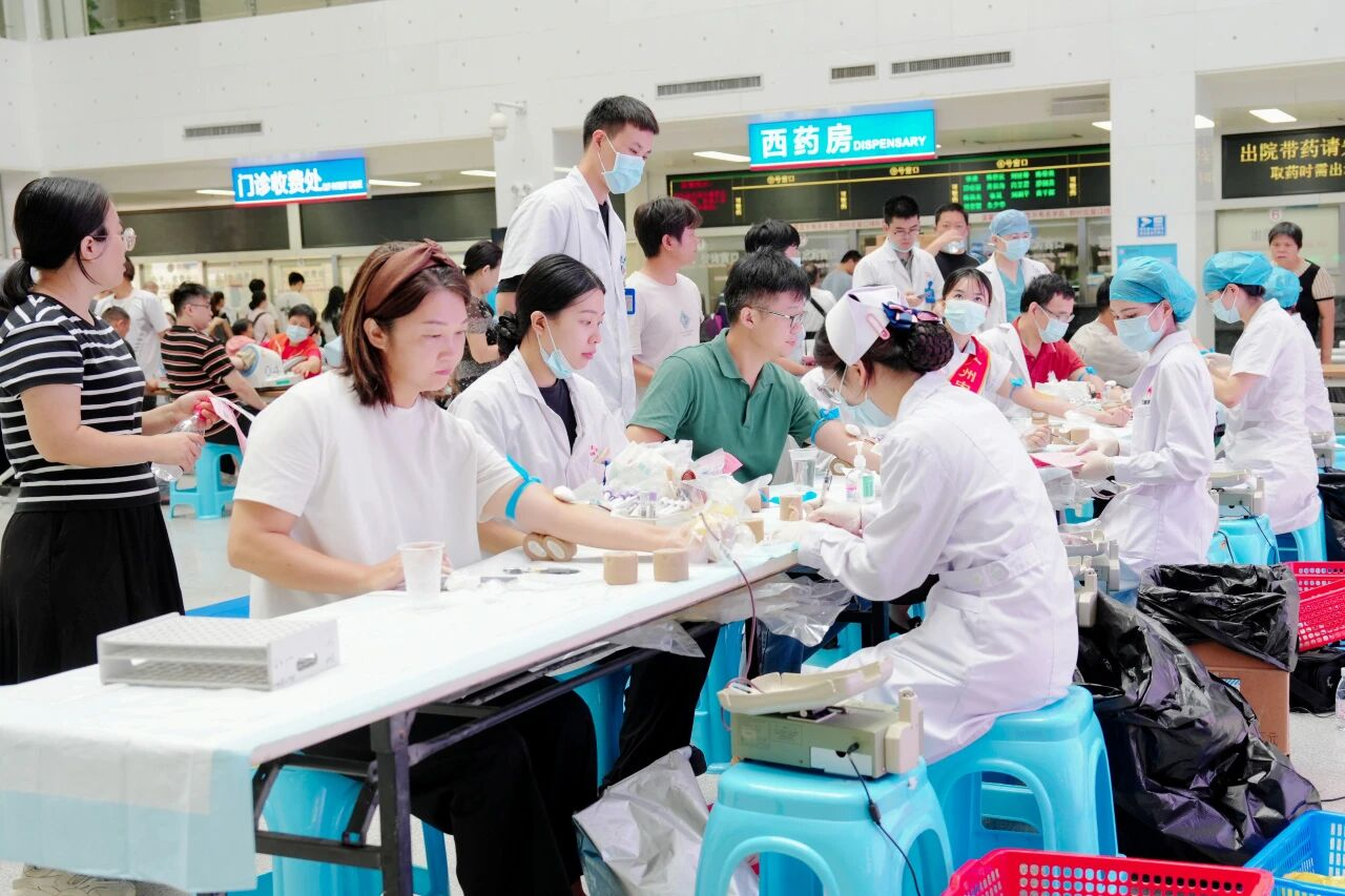 上午8:30,献血点已排起长队。员工们依次完成信息登记、血压测量和血液初筛等环节。许多医护人员刚下夜班就赶来现场,行政后勤人员也积极加入。