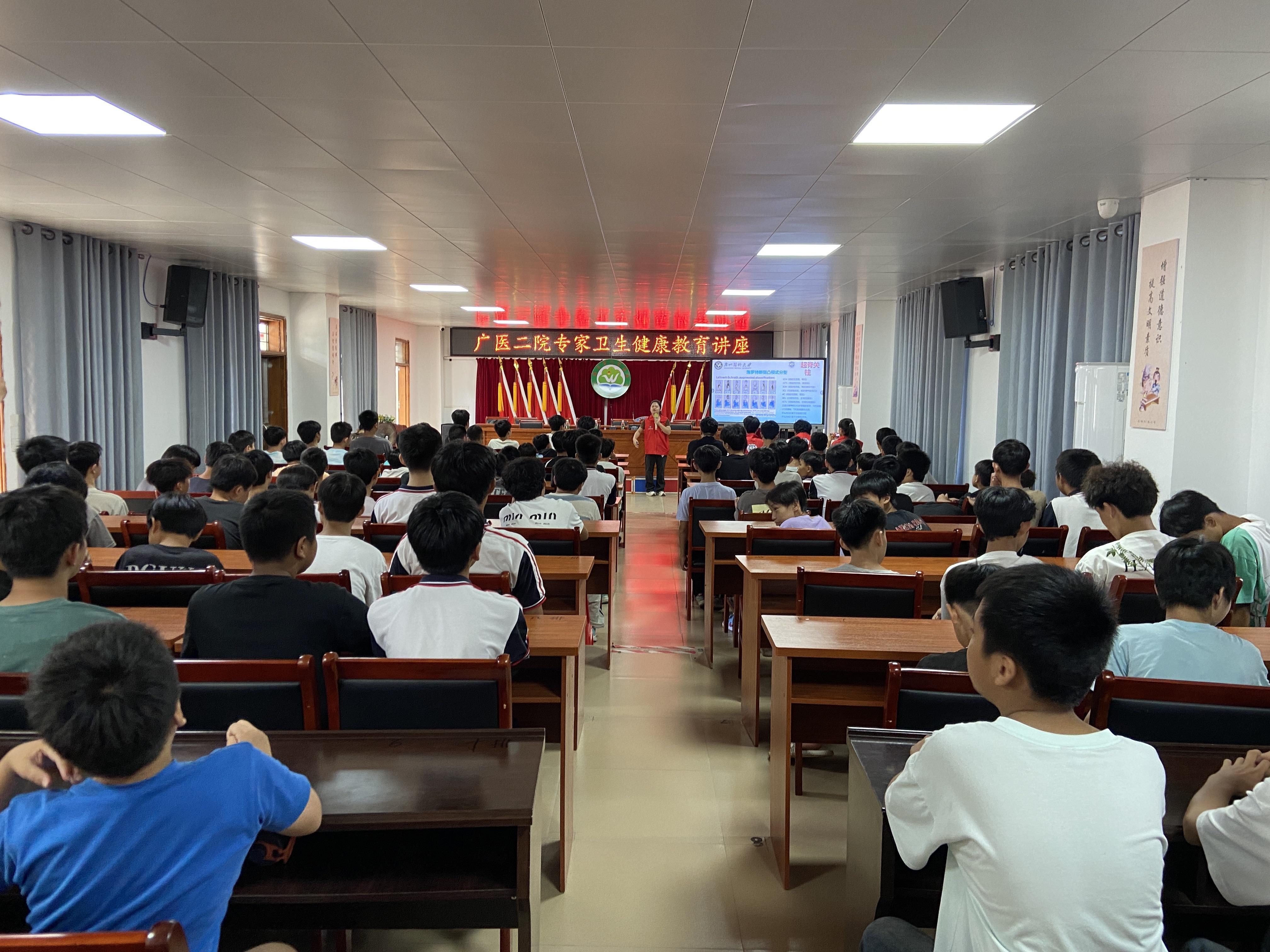 在陆丰市八万学校,广医二院中医科副主任医师谭永振带领学生团队为孩子们带来了一堂生动有趣的“挺起少年脊梁,拥抱健康未来”主题科普讲座。