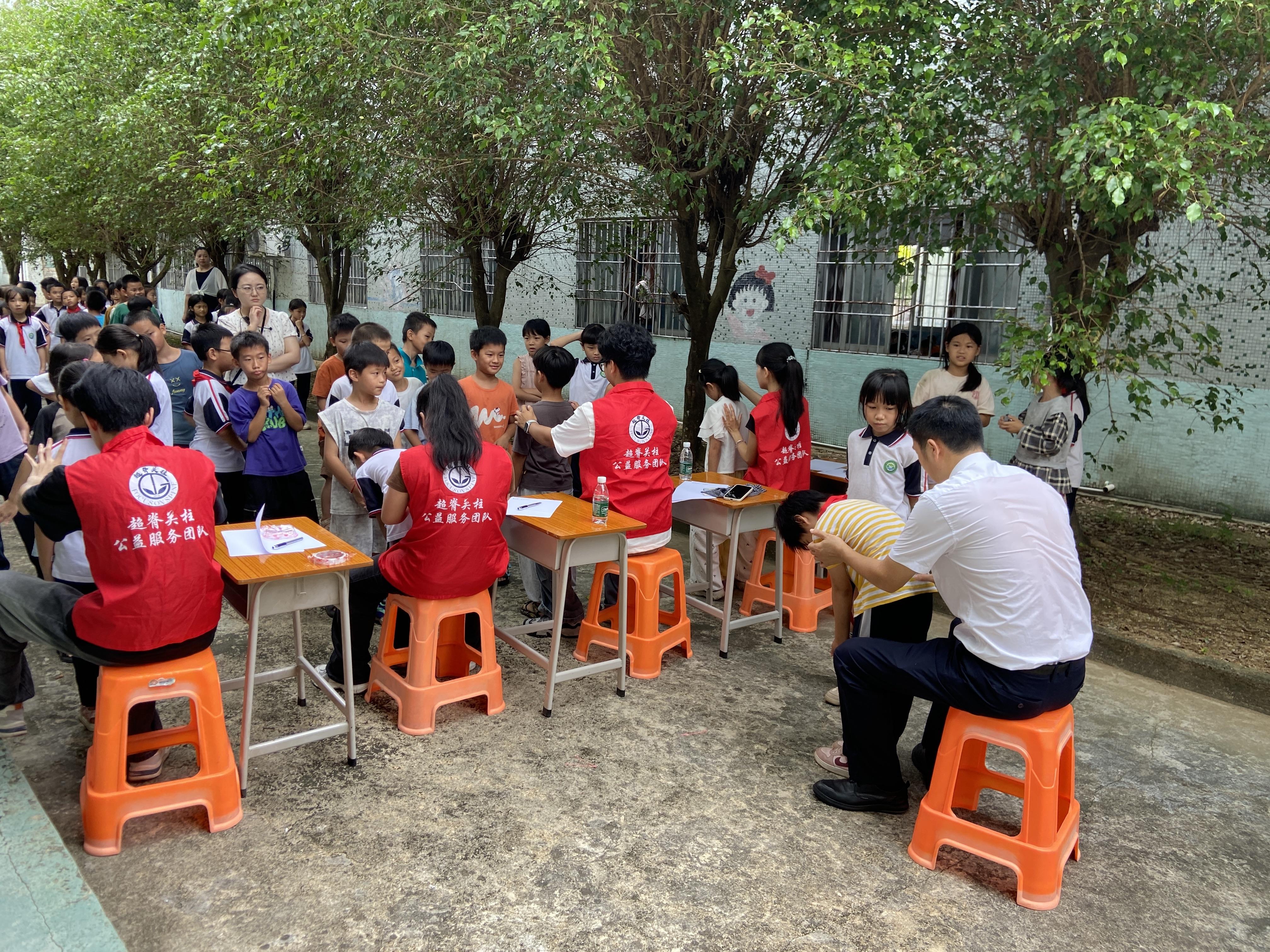 讲座结束后,志愿队为该校400余名学生进行了脊柱侧弯初步筛查,发现了数名疑似脊柱侧弯的学生。