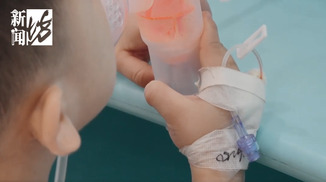 在治疗室里,手上带着输液留置针做雾化的孩子不少。大多都是感染了呼吸道合胞病毒的5岁以下儿童。