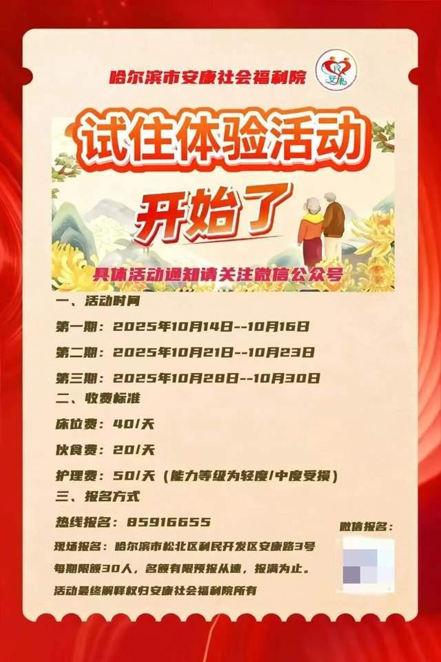 不过,记者注意到,该福利院10日发布了“敬老月暨开放月活动”启动消息,面向全市老人提供参观体验试住等服务,床位费40元/天,伙食费20元/天。首批报名于10月14日至16日,限额30人,报名需要达到“法定退休年龄”等条件。