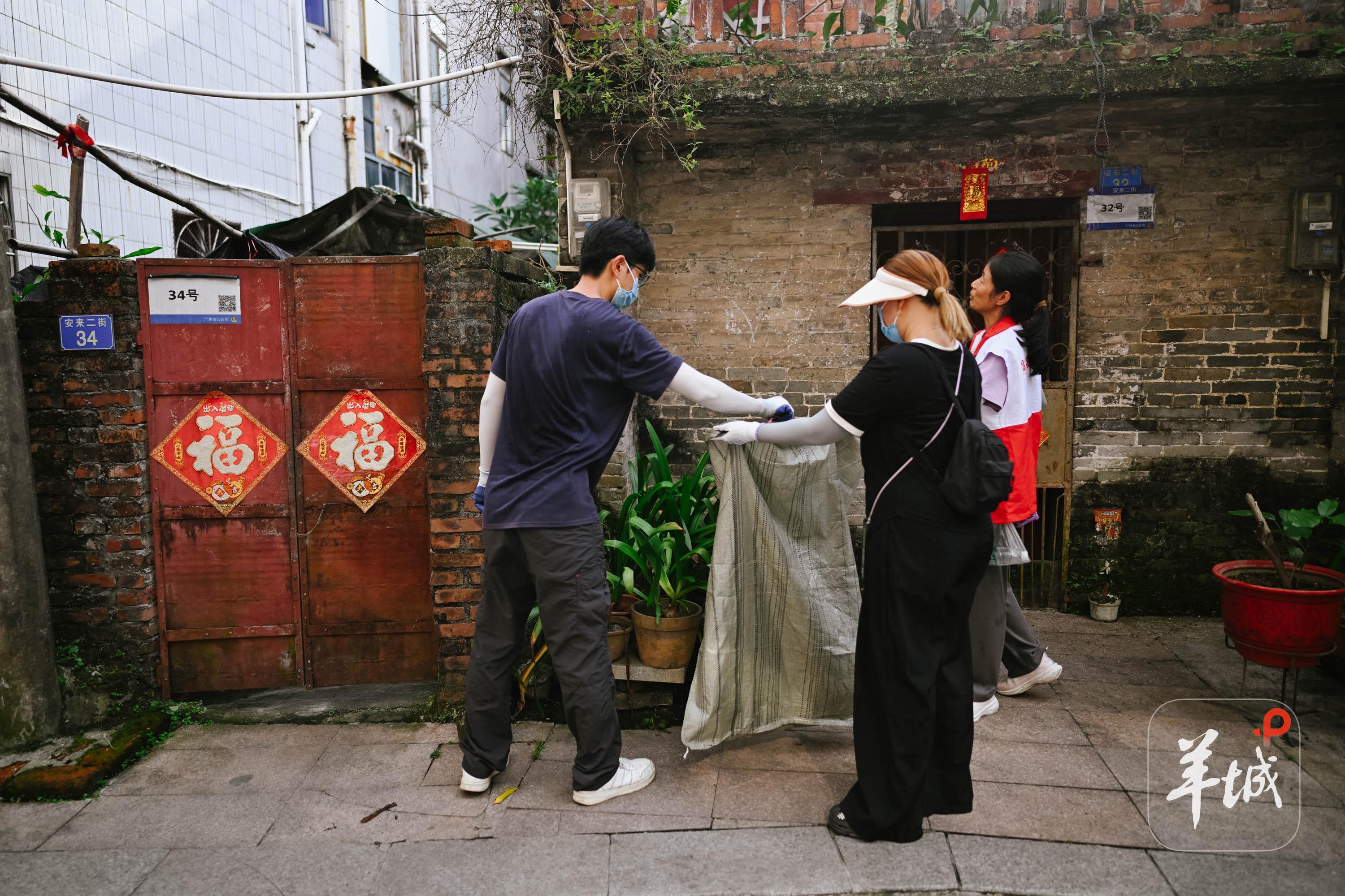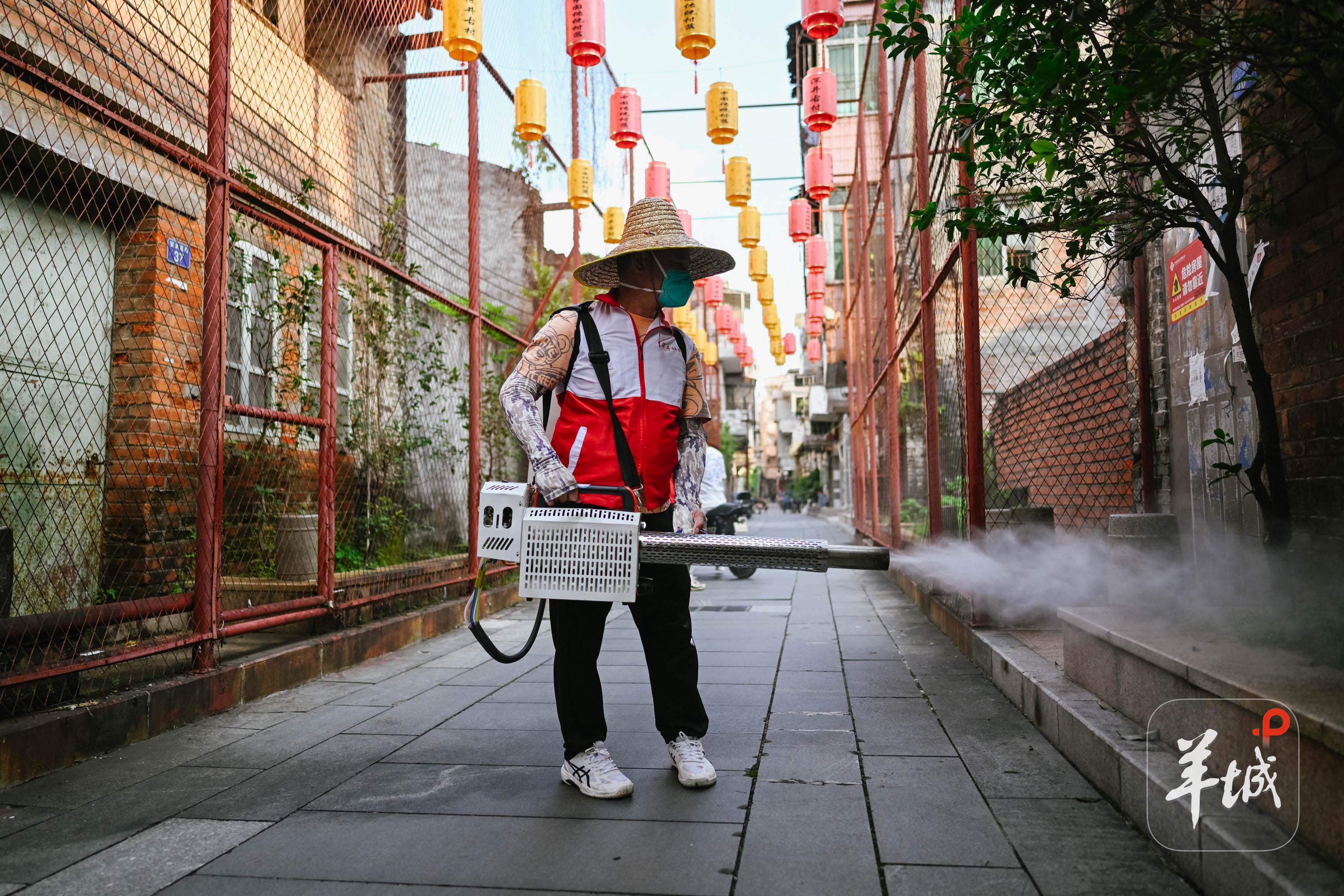 其中一支清洁小分队来到安来二街,这里是当地正在改造的一条古街,居民住宅居多。“这里下水道容易孳生蚊虫,需要喷灭蚊药吧。”深井社区居委专干秦嘉敏拿着灭蚊药物,边走边看。