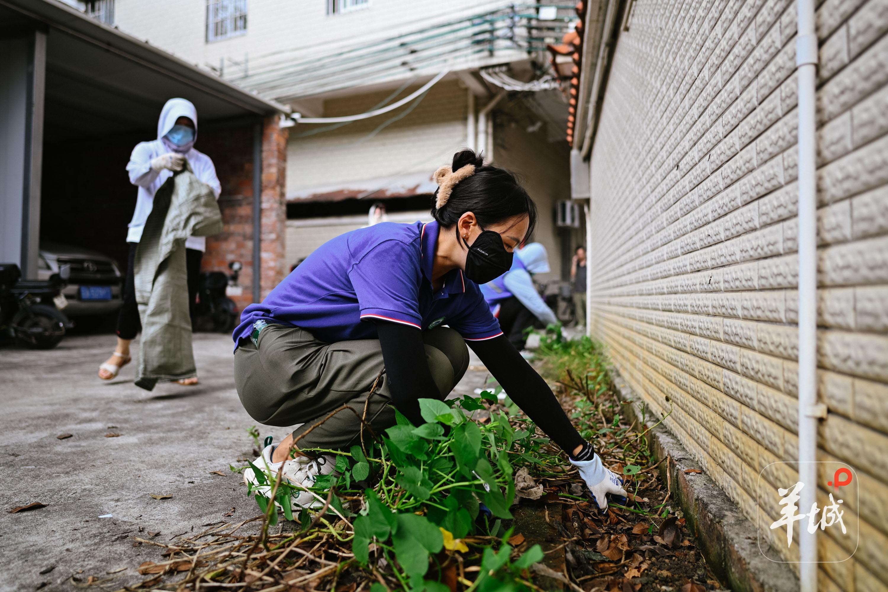 “辖区内老旧房屋、历史建筑多,还有许多空置用地,我们投入大量人力物力进行整体清理。”深井社区党委副书记凌启棠带着志愿者队伍穿过狭窄的村巷,来到几栋居民楼中间一块荒废已久的用地,他介绍,前期工程队花了一周时间对荒废用地进行建筑垃圾、杂树杂草清理,整治后将建成口袋公园。