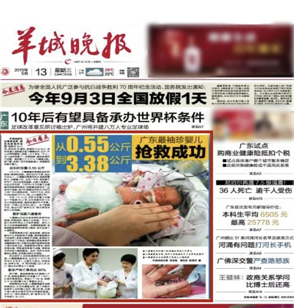 中山一院具有救治超低出生体重早产儿的丰富经验,早在10年前,新生儿科团队就成功救治了一名出生体重550g,胎龄25+2周的男婴,在当时刷新了广东胎龄最小、体重最轻的新生儿纪录,目前该男童健康成长。曾参与救治的新生儿科李晓瑜副教授说:“我们不仅注重早产儿的生存保障,更关注早产儿的生存质量提升以及远期的预后优化。”