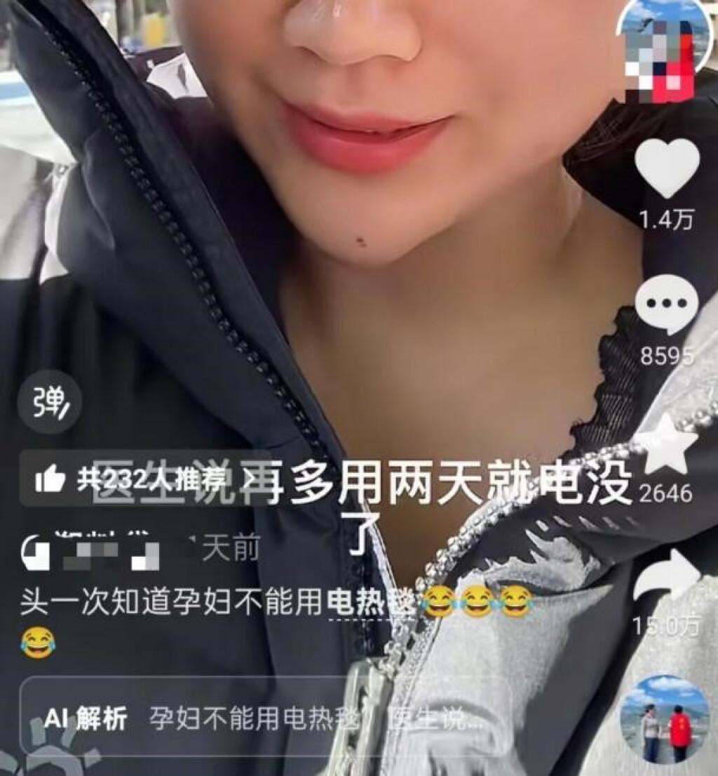 10月22日,一则关于孕妇使用电热毯后出现健康问题的视频在网络上引发关注。视频中,一名孕妇自称在孕早期使用电热毯后出现腹痛,经检查发现子宫内有2厘米脓块,接诊医生表示“再多用两天,孩子可能就保不住了”。该视频评论区内,不少网友留言称“第一次听说”“没想到电热毯孕妇居然不能用”。