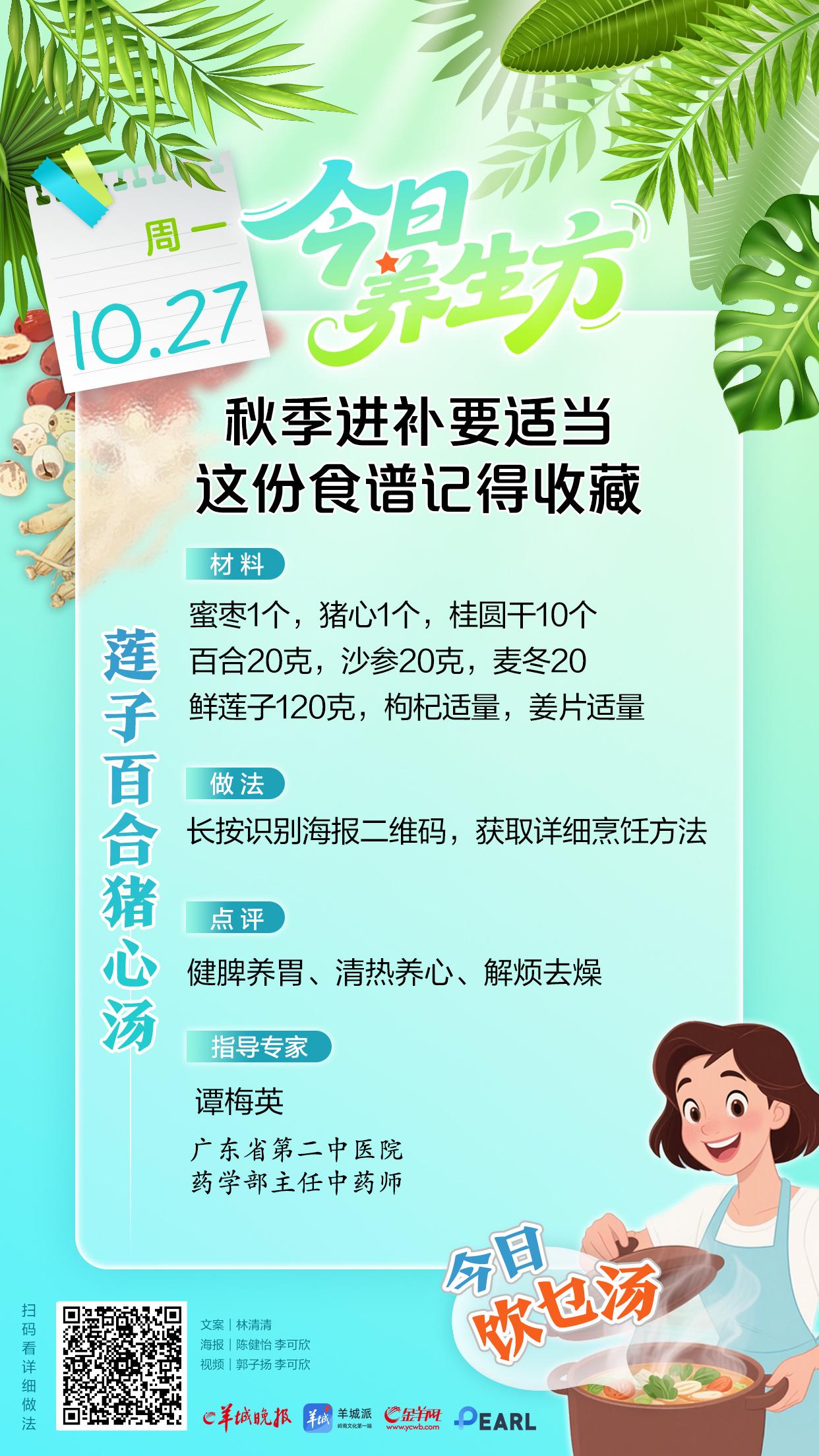 广东省第二中医院药学部主任中药师谭梅英推荐几款秋季养生食疗方: