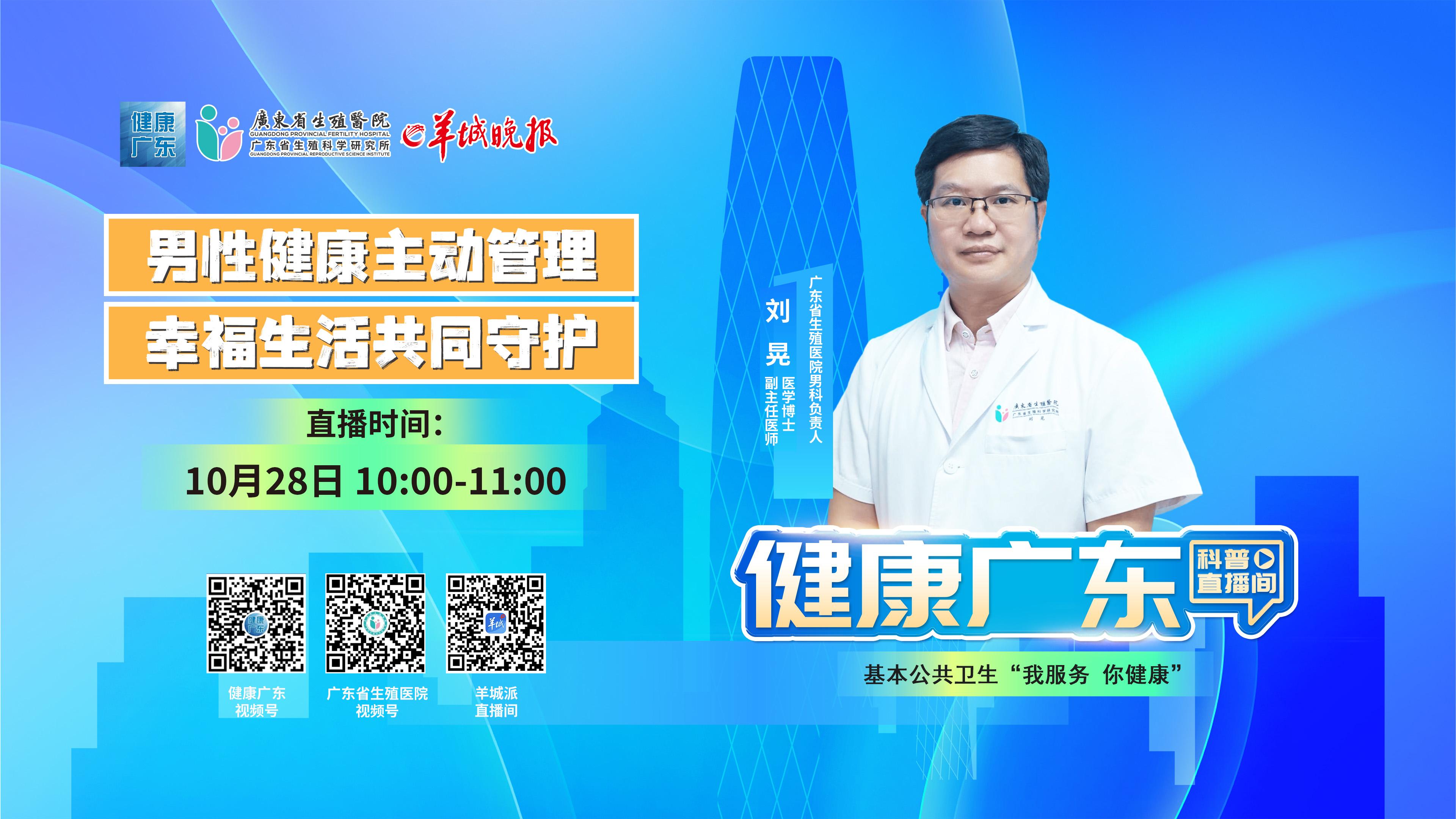 2025年10月28日是第26个“中国男性健康日”。今年的主题特别有意义——“男性健康主动管理,幸福生活共同守护”。这个主题背后,是我们对每一个家庭幸福的期盼,也是对每一位男性朋友健康责任的呼唤。我们特别邀请到广东省生殖医院男科负责人刘晃主任做客直播间和网友们聊聊不同年龄阶段的男性,该注意哪些健康问题?