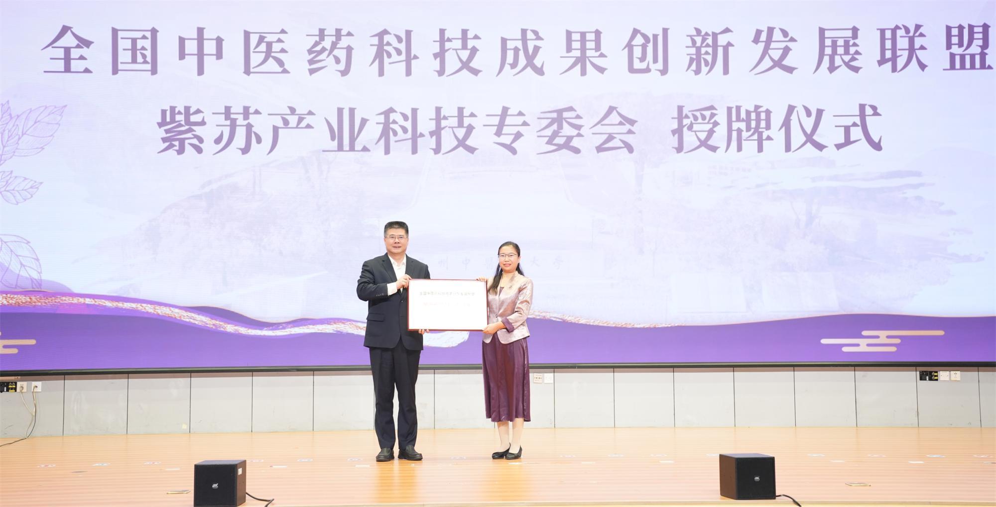 会上,广州中医药大学党委书记陈文锋为全国中医药科技成果创新发展联盟紫苏产业科技专委会授牌,广东省中医药局副局长柯忠与陈文锋共同为理事单位授牌,标志着我国紫苏产业跨区域、跨领域协同创新的全国性平台正式成立。
