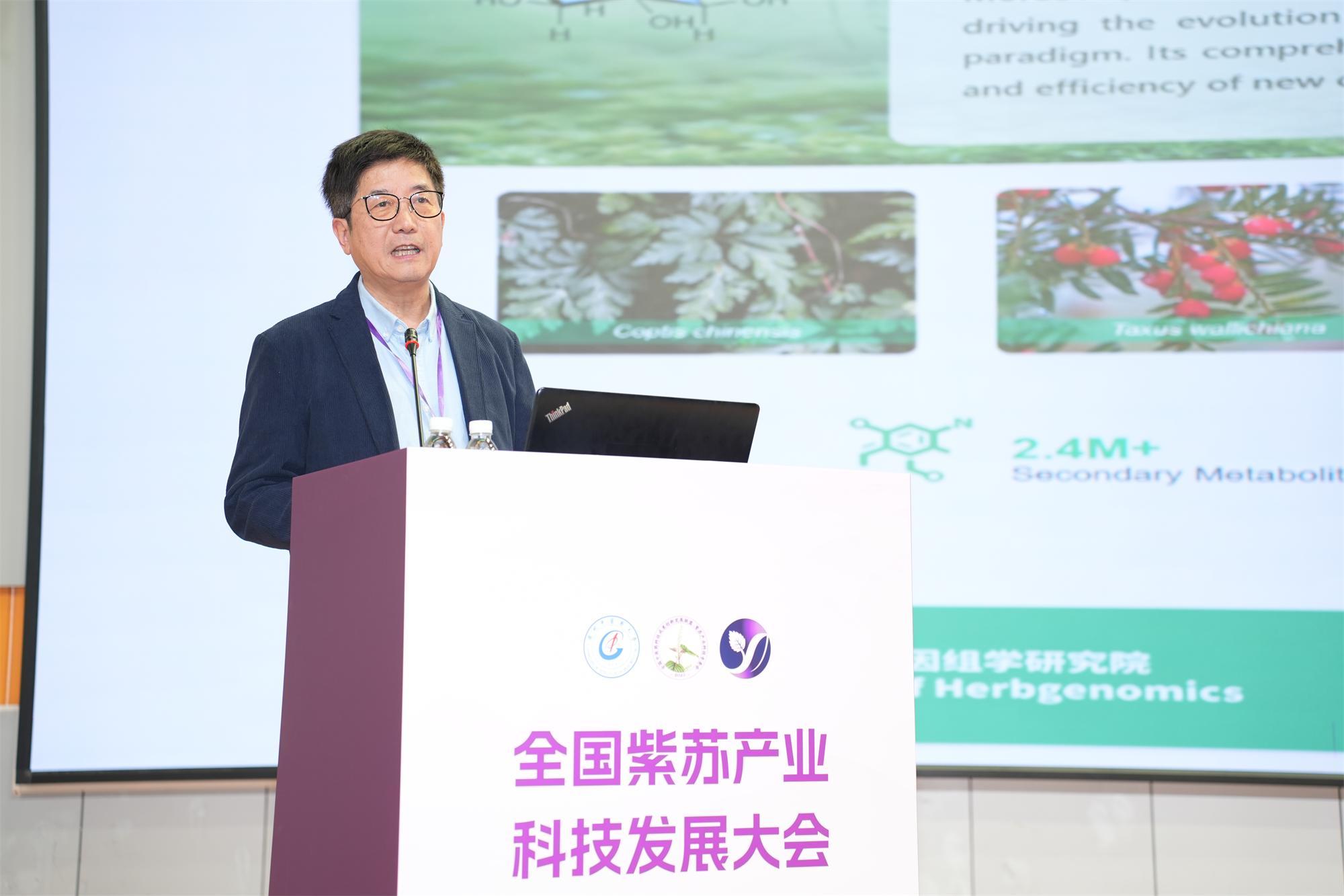 现场,中国工程院院士、成都中医药大学首席教授陈士林以《药食同源中药材发展新技术及新策略》为题作报告,从基因组学、分子育种、功效物质深度挖掘等前沿领域,为紫苏产业科技升级提供顶级智库支撑。其团队提出的“科技赋能传统药材现代化” 理念,为紫苏从传统药食同源植物向高附加值产业转化提供了科学路径。