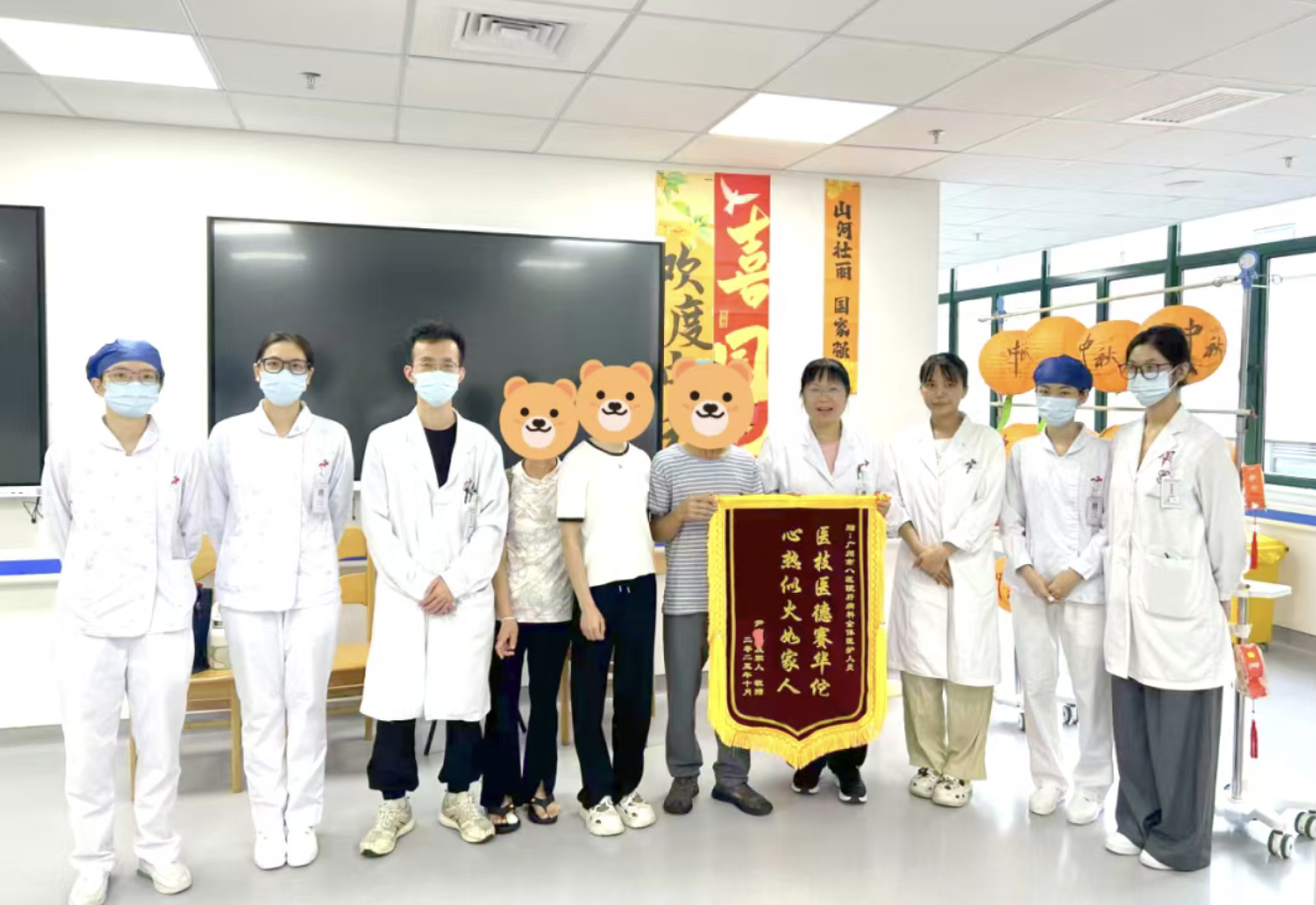 “是你们没放弃我,给了我第二次生命!” 近日,55岁的尹先生康复出院时,紧紧握住广州医科大学附属市八医院(以下简称 “广州八院”)肝病中心医生的手连声感谢。他将三面印着 “医德高尚暖人心、医术精湛传四方” 的锦旗,分别送到肝病科全体医务人员、重症肝病科高洪波主任和介入医学科何旭主任手中,以此感谢这支多学科团队(MDT),在他命悬一线时跨界攻坚,闯过重重 “手术禁区”。