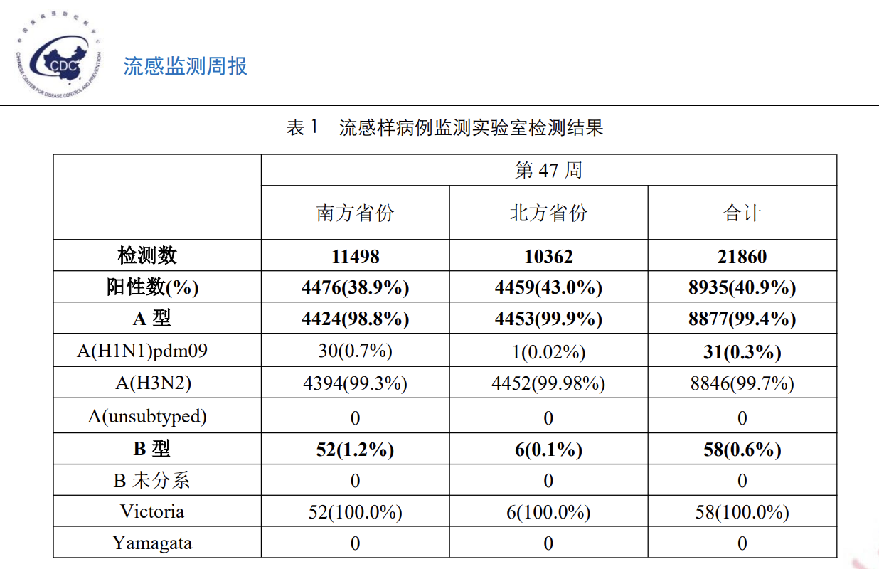 病原学监测进一步锁定了当前的“主攻”毒株。南、北方省份检测出的流感病毒阳性标本中,A(H3N2)亚型占绝对主导。南方4476份阳性标本中A(H3N2)达4394份,北方4459份阳性标本中A(H3N2)占4453份。