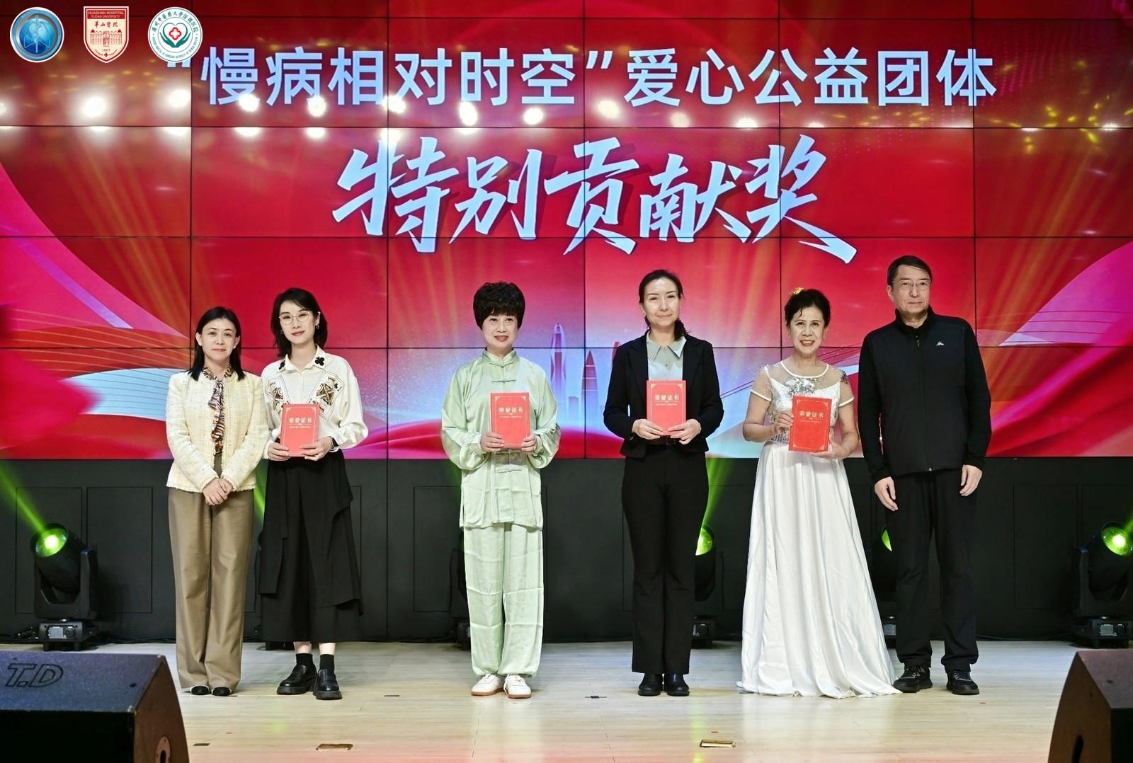 现场举行了“慢病相对时空”公益奖项颁发仪式,多位患者代表获“患者特别贡献奖”,一批医务工作者获颁“医护工作者特别贡献奖”,深圳凤凰涅槃艺术团因长期以艺术助力康复,被授予“爱心公益团体特别贡献奖”。