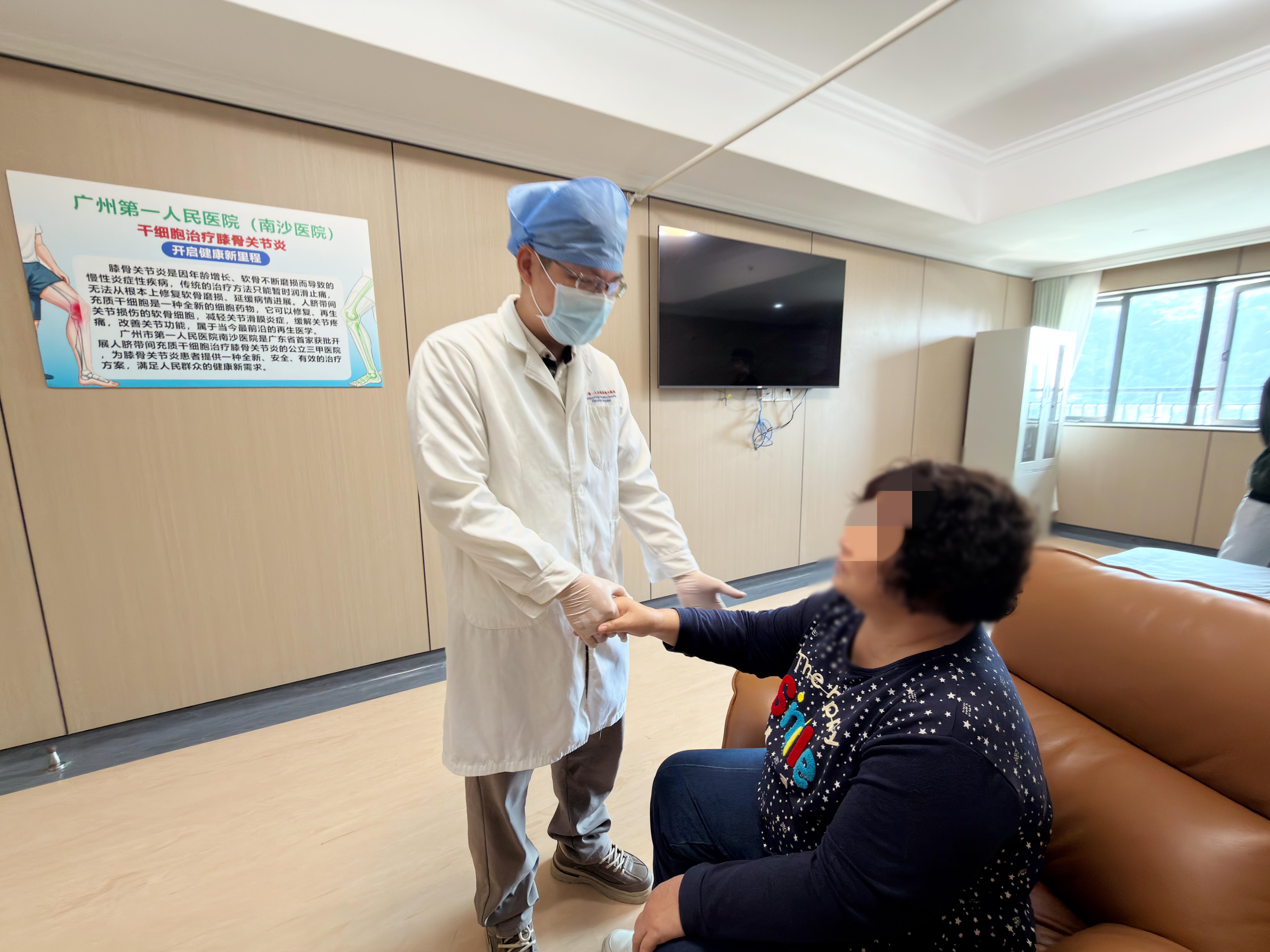 “我又不愿意做手术。”不愿接受手术的吴阿姨,四处打听保守治疗方法。幸运的是,通过亲戚介绍,她了解到广州市第一人民医院南沙医院开展的干细胞疗法。抱着试一试的态度,11月10日,她在这里接受了双膝盖人脐带间充质干细胞注射,成为南沙区采用该疗法治疗膝关节炎的“第一人”。