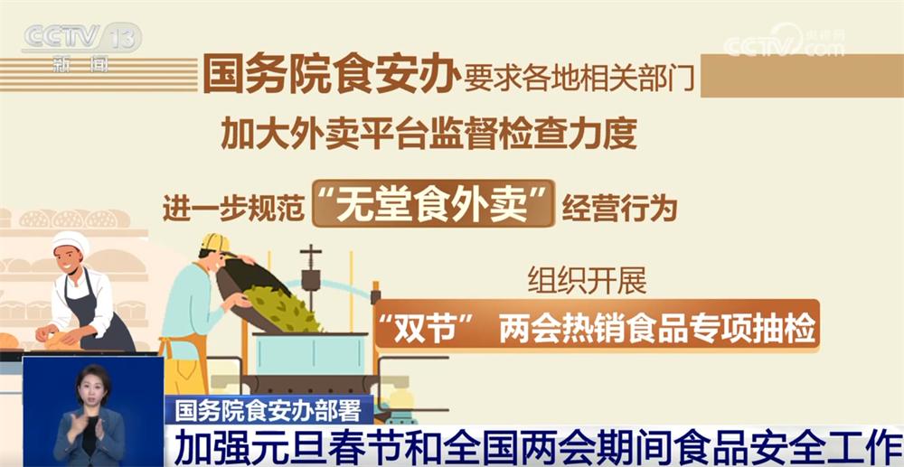 记者15日了解到,国务院食安办部署各地加强元旦、春节和全国两会期间食品安全工作。