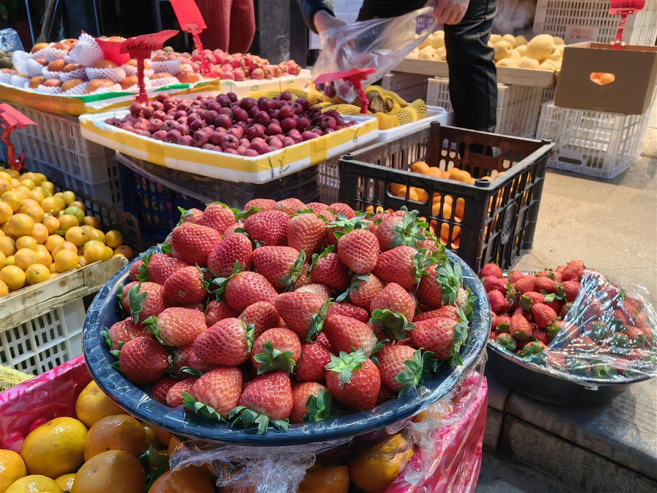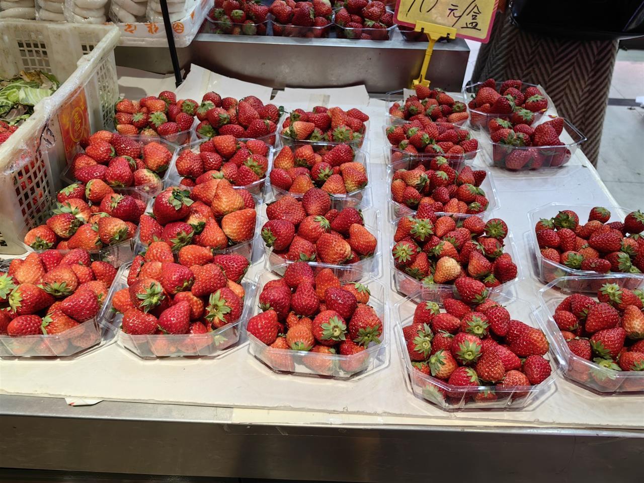 一位本地批发商介绍,草莓的上市旺季从12月中旬开始,持续到次年的3月。主要拼的是颜值和口感:“卖过草莓的人都会奇怪,怎么会有‘打膨大剂’的说法。”商户笑着说,大个头草莓外形不好看,如果是空心的就更不会有回头客,农户不会用,商家也不会卖。