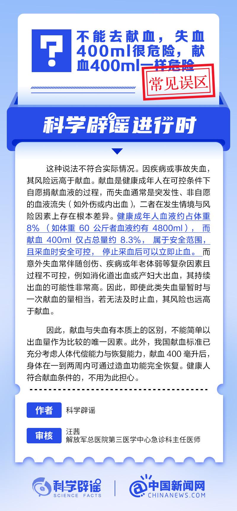 献血和失血有什么区别?有市民疑惑,失血400ml很危险,是否意味着献血400ml也是危险的行为?