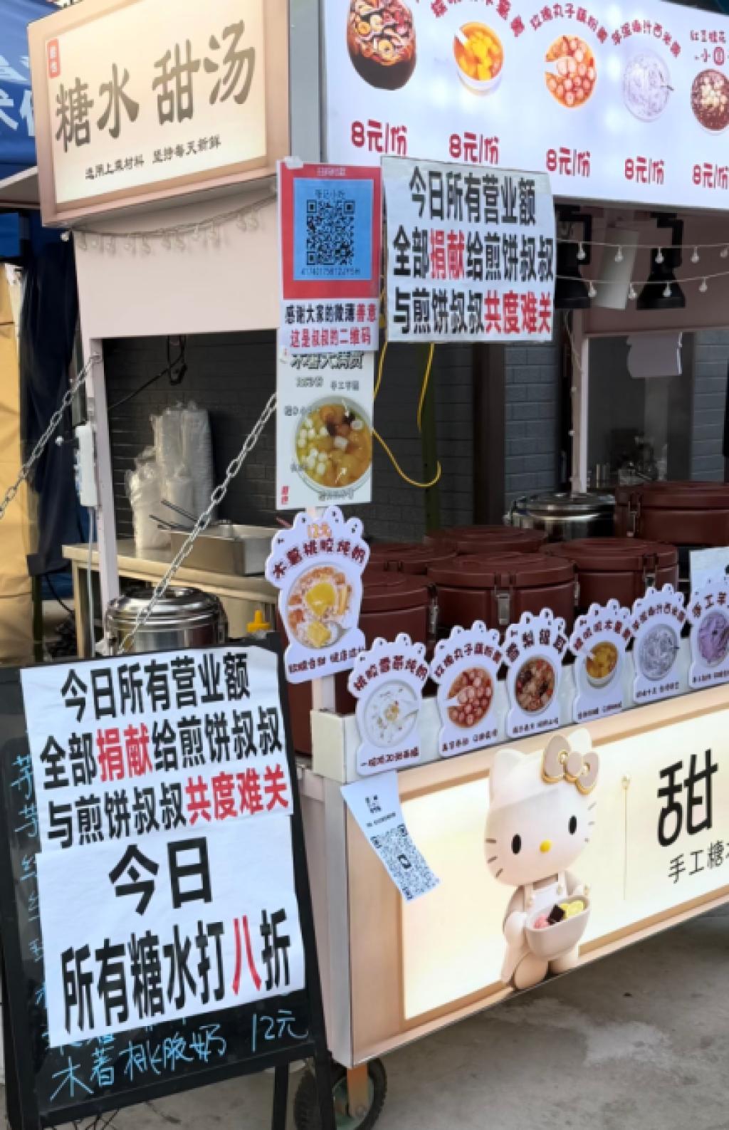 一条小吃街,竟然都是同一个收款码?这不是系统故障,而是不久前,福建师范大学旗山校区旁小吃街上许多摊位的暖心举动。从街头到巷尾,所有收款码悄然“统一”,旁边附着一行朴素的说明:“捐赠今日营业额,与‘煎饼叔叔’共渡难关。”