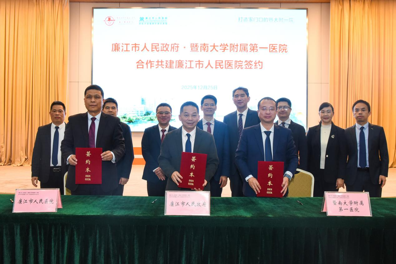 12月25日,廉江市人民政府、暨南大学附属第一医院签署合作协议共建廉江市人民医院,后者正式纳入暨南大学附属第一医院托管体系,签约仪式上,暨南大学附属第一医院北部湾医院揭牌成立,将为北部湾区域群众带来“家门口”的优质医疗资源。