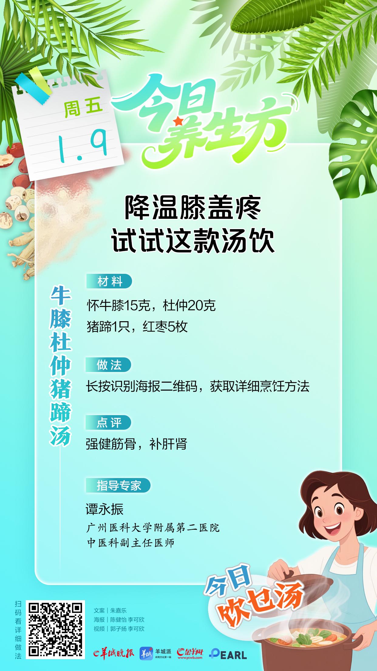 降温天气,广州人餐桌上自然少不了热汤饮,谭主任为大家推荐两款冬季护膝食补配方: