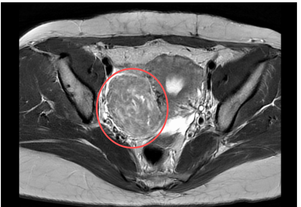 近1年来,吴女士的经期出现变化,月经量也比既往多了一倍,加上腰痛、尿频症状逐渐出现并加重,来到广州医科大学附属第三医院妇科门诊检查后发现,子宫肌瘤远不止一个,最大的一个堪比拳头,而且向阔韧带凸出,长在了子宫阔韧带上。