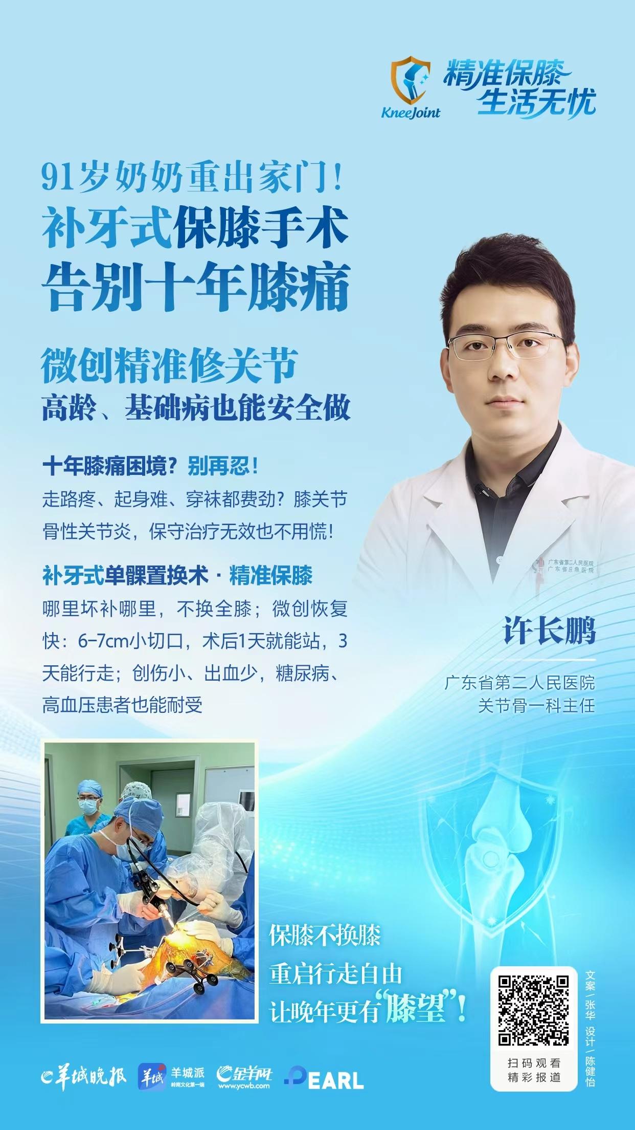 近日,李奶奶的孙女通过微信视频,了解到广东省第二人民医院关节骨一科的许长鹏主任在“保膝治疗”方面经验丰富,尤其擅长为高龄、有基础病的老人解决关节难题。一家人抱着最后的希望,找到了许长鹏主任。