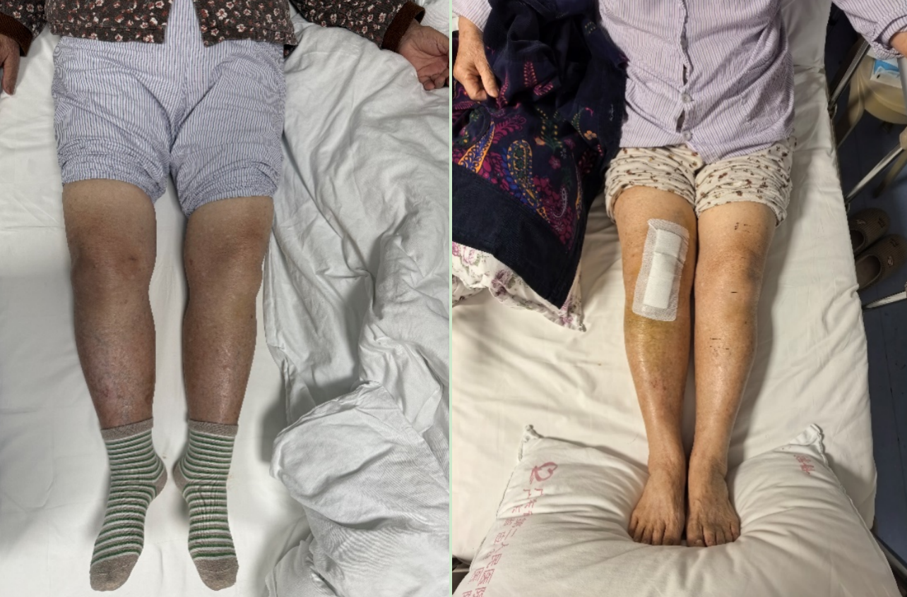 子女们看在眼里,急在心里,带着李奶奶辗转多家医院求诊。然而,考虑到她年过九旬,还患有糖尿病、高血压等基础疾病,医生们大多建议保守治疗:吃药、贴膏药、做理疗,甚至尝试了关节内注射润滑剂(玻璃酸钠)。可惜,这些方法对李奶奶严重的关节磨损效果甚微,疼痛依旧。