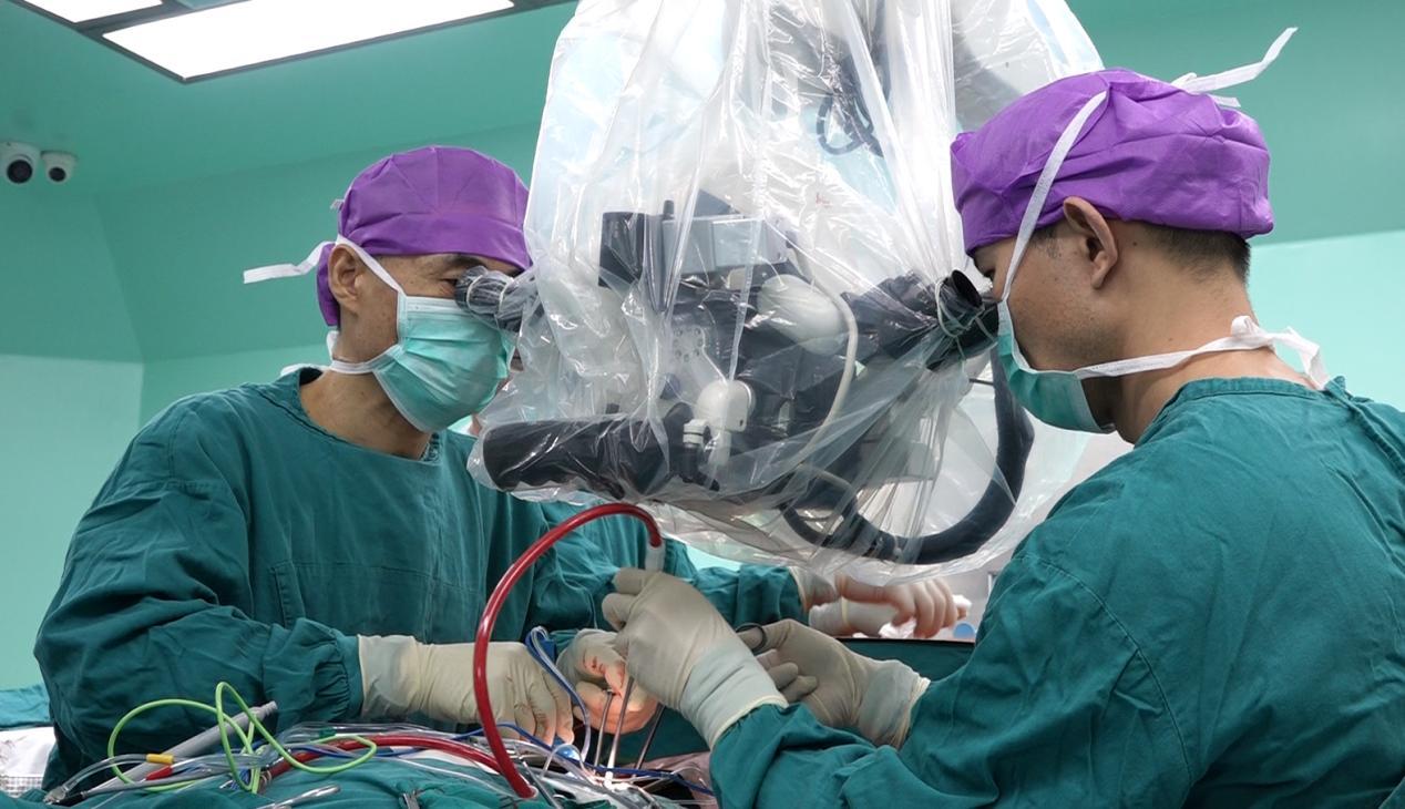 手术过程中,鲁明发现,患者颅内肿瘤坚硬如石头,与周围神经、血管及脑干组织粘连紧密,再加上患者有过脑肿瘤手术史,颅内情况更为复杂,进一步增加了手术难度。