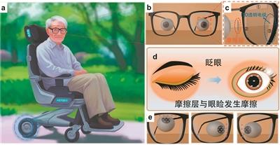 “其工作机制犹如在眼睛里搭建一座‘微型电站’。”龙云泽说,这座“电站”内部同时集成了“发电机组”和“信号发射台”。其中,聚二甲基硅氧烷(PDMS)材料如同隐形眼镜贴附于使用者眼球表面,是一台“微型摩擦发电机”,每当使用者眨眼或转动眼球,眼球与PDMS材料之间便通过摩擦持续产生电荷。与此同时,一副镜片四周嵌有透明氧化铟锡(ITO)电极的眼镜则扮演着“信号发射台”的角色。透明电极通过静电感应精准捕捉电荷分布和变化,并将其实时转化成可识别的电信号,再经由控制电路传导到外部设备,最终实现精准操控。