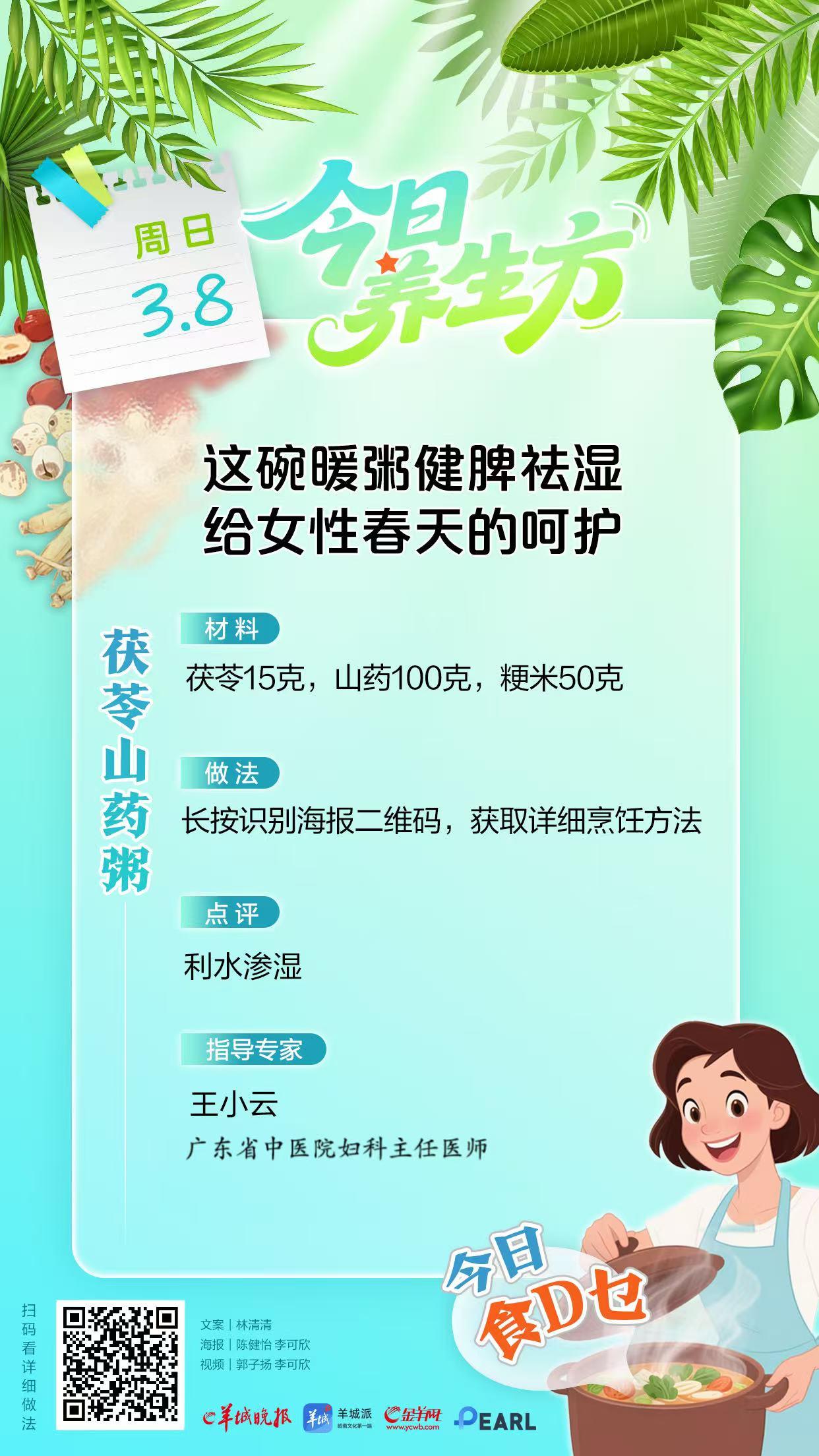 中医认为“女子以血为本”,女性体质多偏阴柔,阳气相对不足。春季人体毛孔逐渐张开,但倒春寒的冷风夹带湿气,容易从体表侵入经络,导致出现气血凝滞、脾胃虚寒、免疫力下降等问题。岭南名中医、广东省中医院妇科主任医师王小云特别推荐两款健脾祛湿的粥品,为女性朋友抵御倒春寒的侵袭提供助力,帮助大家在春季调养好身体,焕发生机与活力 。